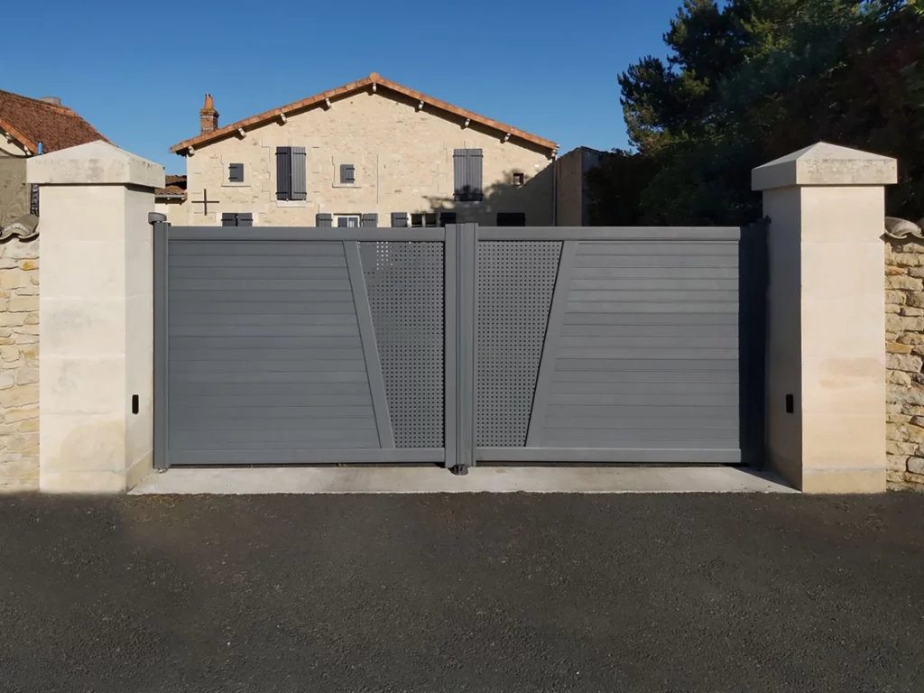 Oui, un portillon piéton peut être intégré directement dans l’un des vantaux ou être installé de manière indépendante à côté du portail. Cette solution facilite les passages piétons tout en conservant l’esthétique globale de l’ensemble.